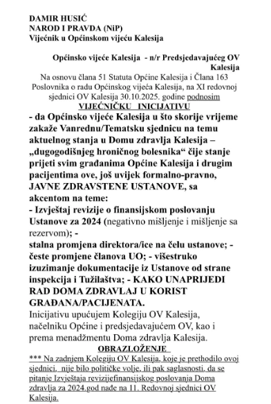 Dodaje da je u proteklom periodu imao na desetine vijećnićkih inicijativa i pitanja upućenih prema kalesijskom Domu zdravlja.