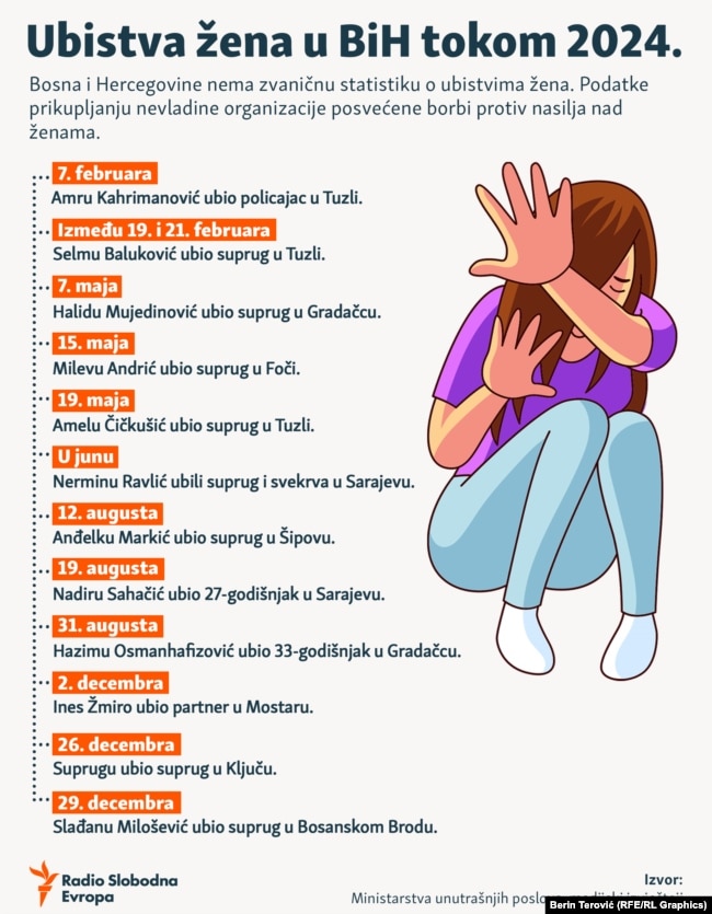 BiH nema potpune, zvanične podatke o broj žrtava femicida, a iz organizacija civilnog društva procjenjuju da se radi o oko 11 ubistava godišnje.